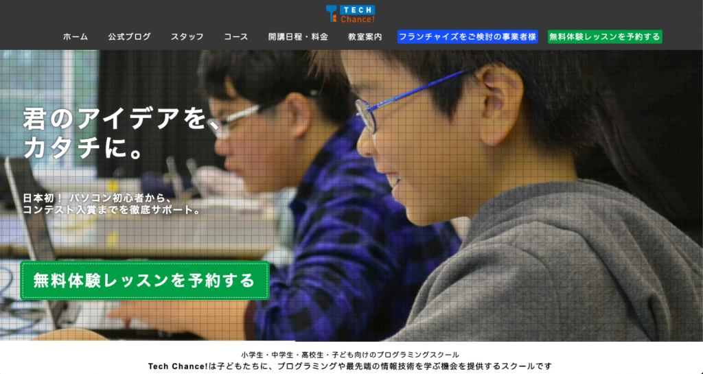 Tech Chance! は、小学生から高校生を対象としたプログラミング教室で、対面教室とオンライン教室の両方を展開しています。