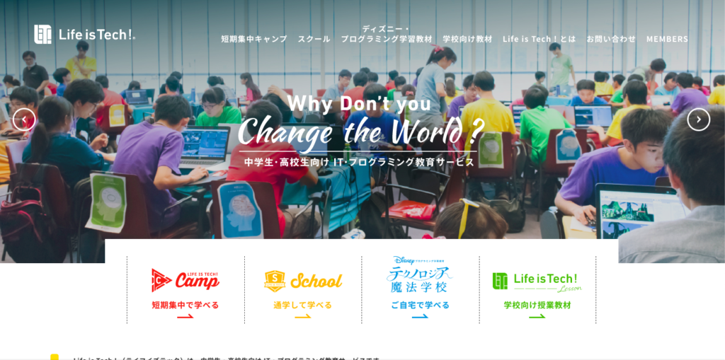 Life is Tech! は、中学生・高校生を主な対象としたプログラミング・IT教育サービスです。