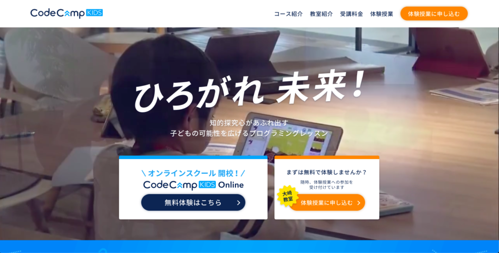 CodeCampKIDSは、小学生から中学生を対象としたプログラミングスクールで、通学型教室と公式オンラインコースの両方を展開しています。